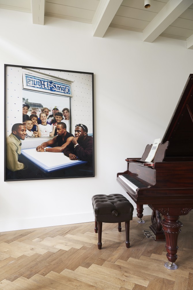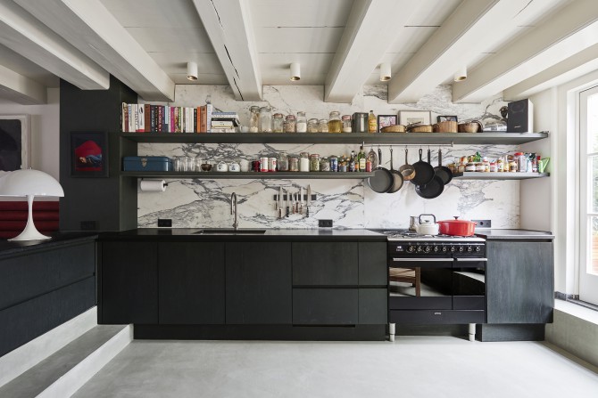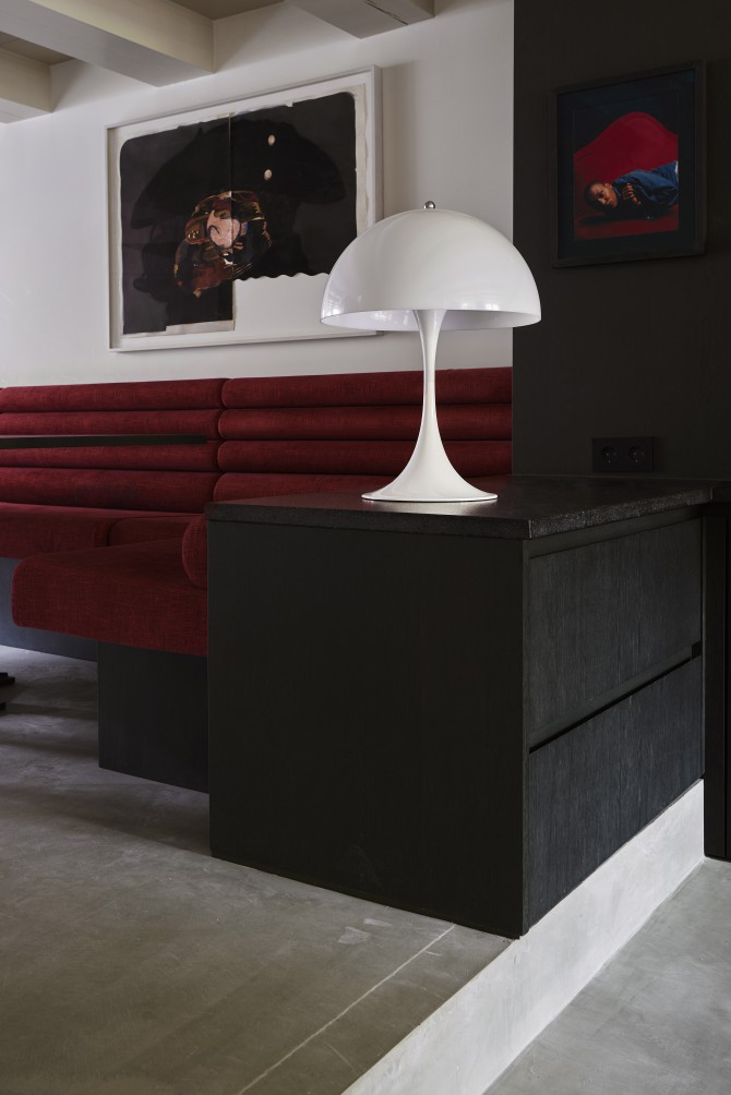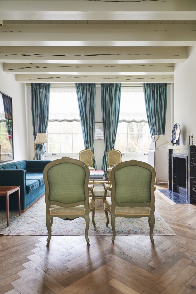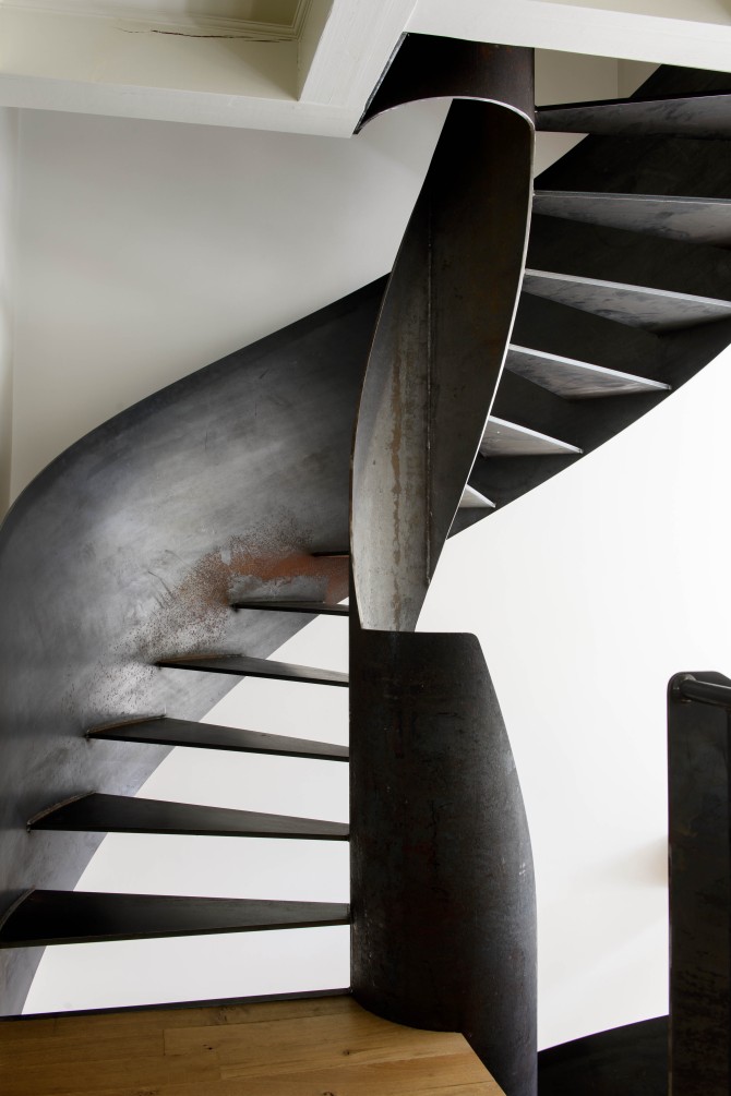 De materialen zijn kwalitatief hoogwaardig en natuurlijk: houten vloeren, marmer, gepleisterde wanden en onbewerkt staal. Ze zorgen voor de eenheid en de ruimtelijke beleving van het ontwerp. De stoffering, meubels en de kunst geven iedere woonlaag een eigen karakter.