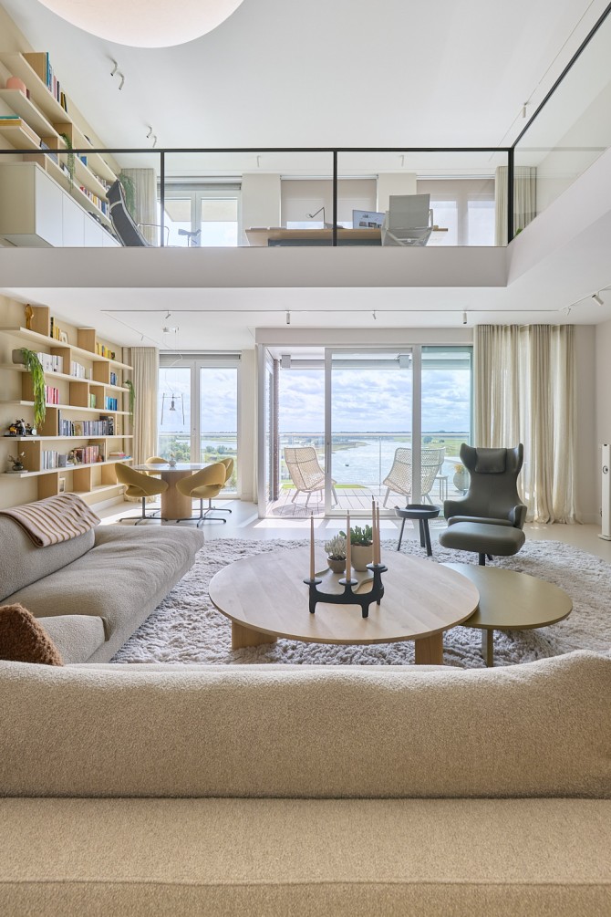 Dit appartement aan de IJssel ligt op de zesde en zevende verdieping en heeft een fantastisch uitzicht op de rivier. De oorspronkelijke ruimte was gedateerd en de indeling van de keuken niet praktisch. Door de nieuwe indeling ontstaat een ruimtelijke woonkeuken aan de voorzijde en is er een handige inpandige bijkeuken.